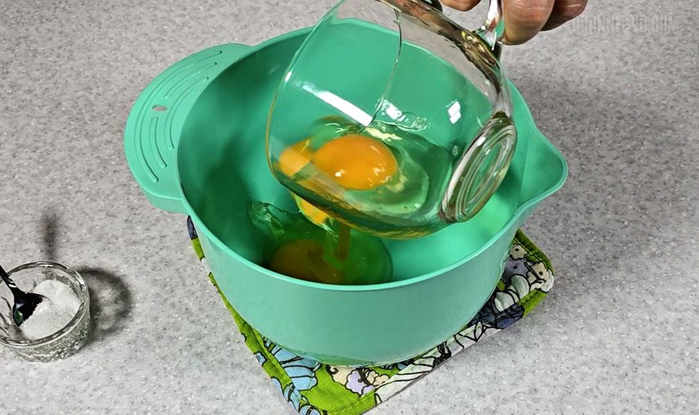 2. З'єднати яйця та щіпку солі. Збити міксером до піни.