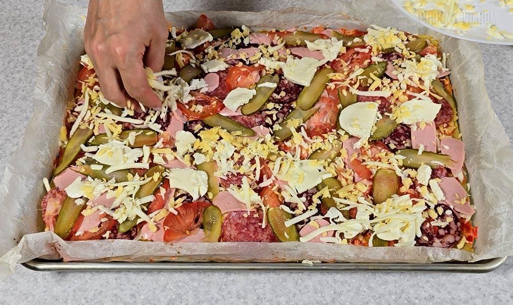 8. Гарячу основу змастити майонезом та кетчупом. Я використовую соус «Паприкаш» (рецепт домашнього соусу «Паприкаш» – за посиланням).