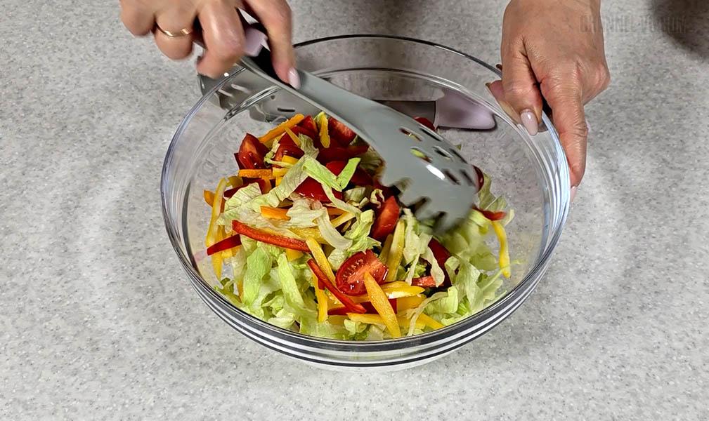 5. Змішати нарізані овочі: салат «Айсберг», болгарський перець та помідори черрі.