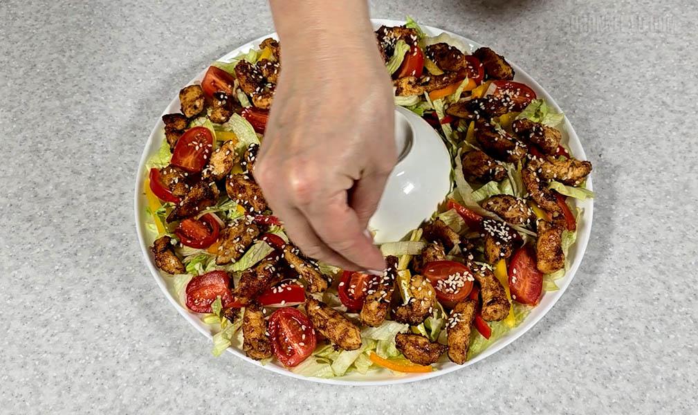 Цей азійський салат – поєднання соковитих овочів, ніжної курки та легкої заправки без майонезу. Він неодмінно стане улюбленою стравою на вашому новорічному столі. Смачного!