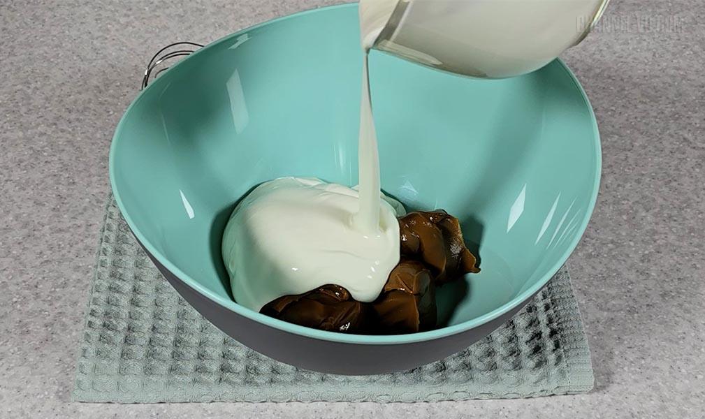 1. З'єднати варене згущене молоко та сметану.