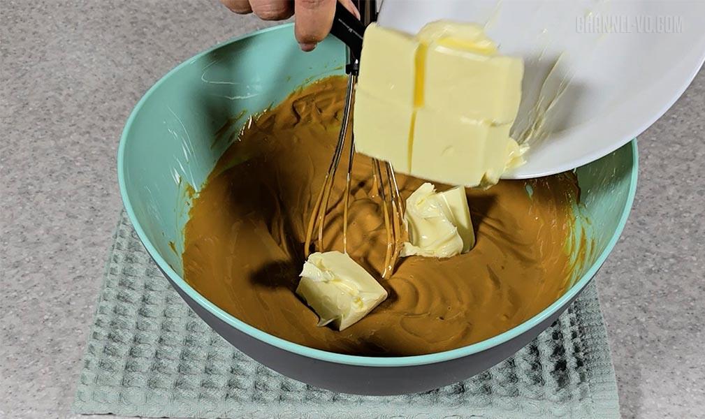 3. До маси додати м'яке вершкове масло. Все перемішати до однорідності.