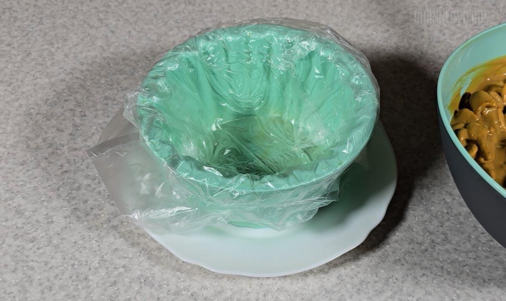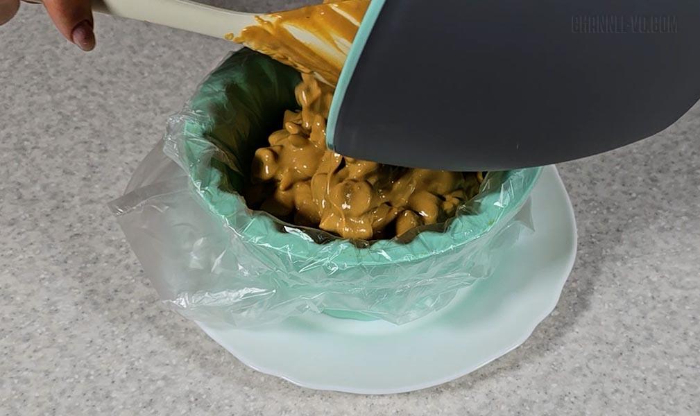 7. Форму застелити харчовим пакетиком (можна харчовою плівкою).