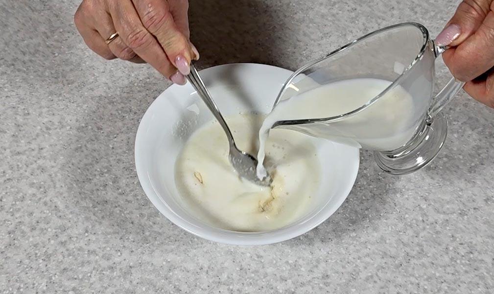 1. Желатин залити теплим молоком або водою кімнатної температури. Залишити для набухання на 15 хвилин.