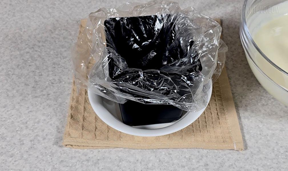7. Форму застелити харчовим пакетиком. У мене це новий вимитий горщик для вазона.