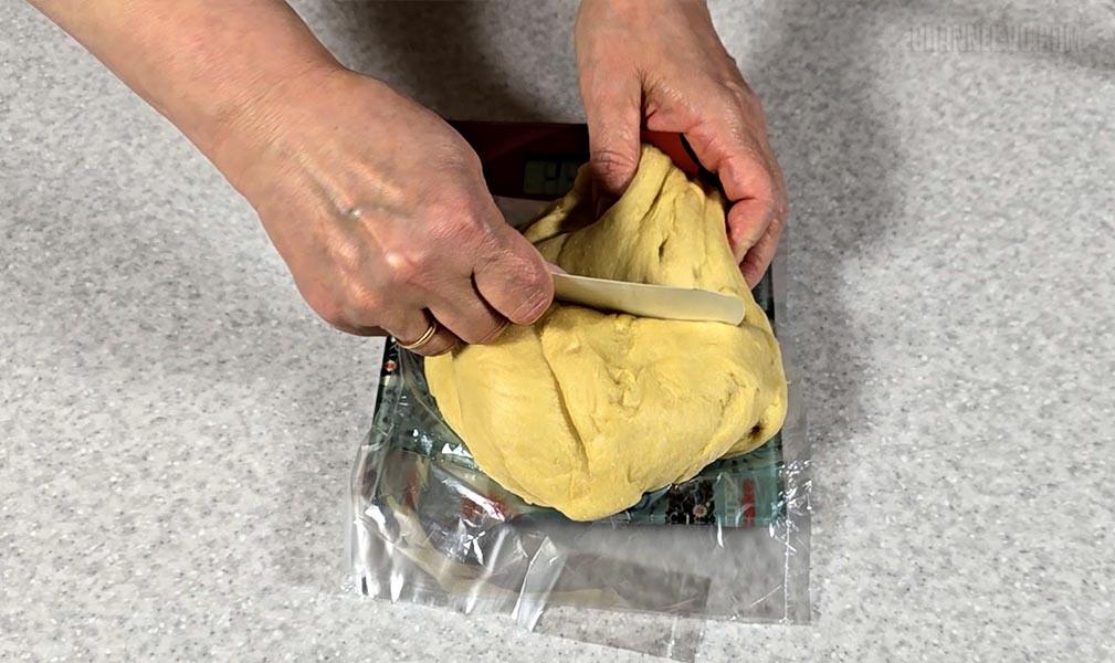 6. Тісто обім’яти та розділити на дві рівні частини.