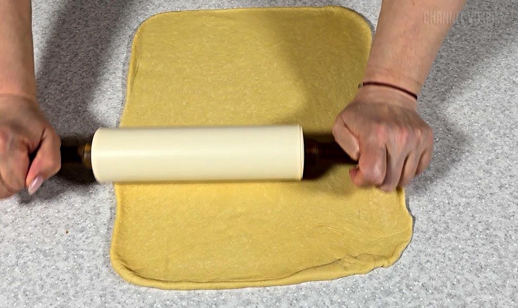 7. Кожну частину тіста розкачати у тонкий прямокутник.