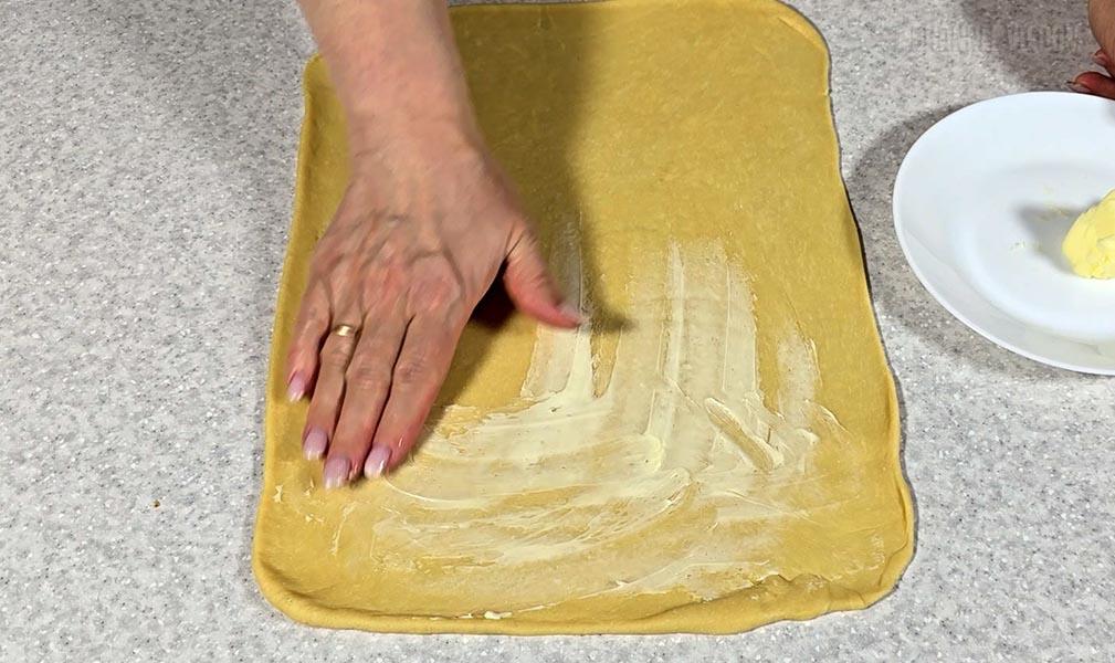 8. Перший прямокутник змастити м'яким вершковим маслом.