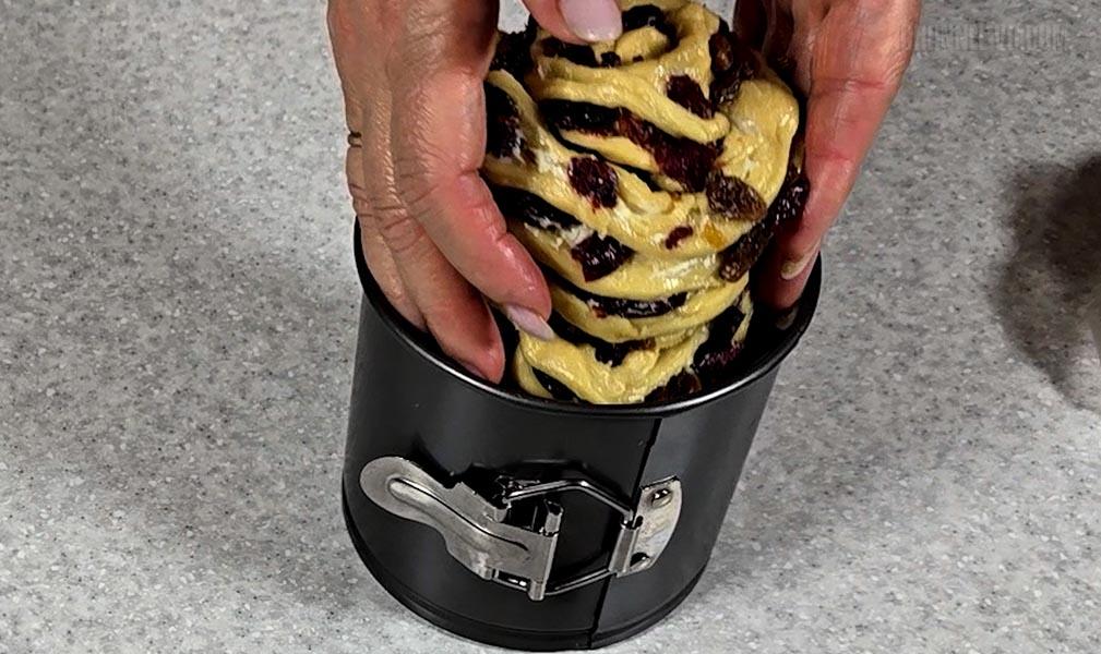 13. Гніздо обережно перекласти у змащену вершковим маслом форму діаметром 12 см, дно якої попередньо вже застелене пергаментом.